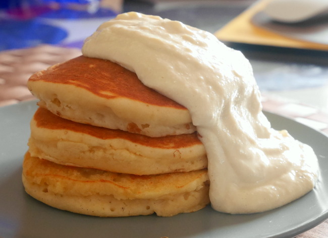 玄米粉でできたグルテンフリーなパンケーキミックス粉で作ったパンケーキを