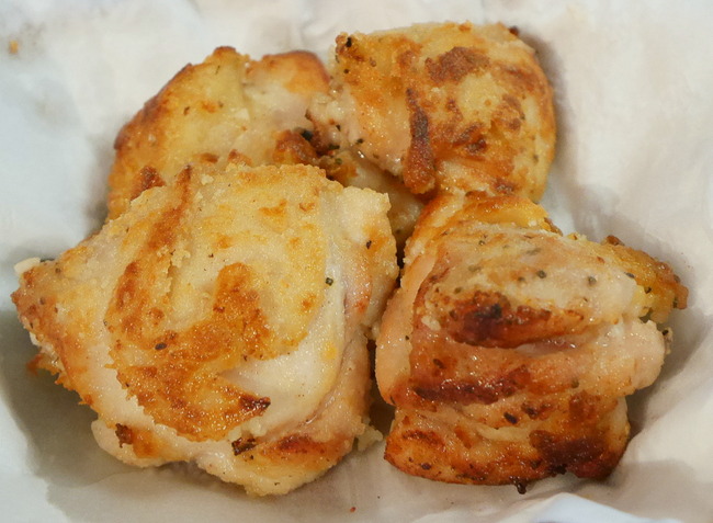 これまた玄米粉をからめてから揚げ風に鶏モモ肉を焼きました♪
